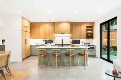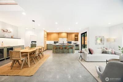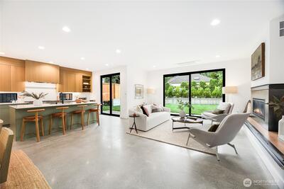 Experience modern Northwest living in this exceptional 5-bed 4-bath new construction by KaneBuilt, nestled in sought-after Bridle Trails. Designed with a perfect balance of luxury and functionality, this home features a spacious yard and a 2-car garage with EV charging. Inside, heated polished concrete floors pair beautifully with real hardwoods and sleek steel accents. The chef-inspired kitchen shines with a gas range, built-in fridge, and high-end appliances. Soaring vaulted ceilings and walls of windows fill the space with natural light, while a versatile upstairs bonus room offers room to relax, play, or work. Gather around the cozy gas fireplace or entertain effortlessly in this stylish, thoughtfully crafted home. This home has it all!