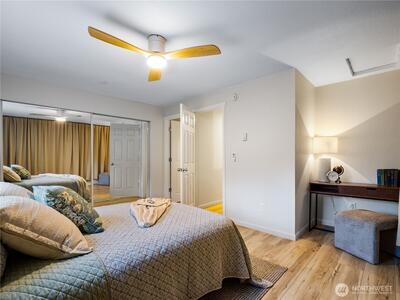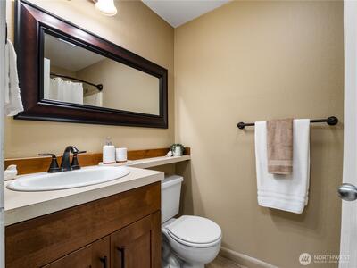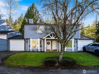 Nestled in Gig Harbor’s Rosedale community, this 2-bedroom, 1.5-bath condo offers warmth and wooded views. Enter into a welcoming living room with large windows and a cozy wood-burning fireplace. The one-car garage opens to the eat-in kitchen with wood cabinets, room for an island, and views of the forested backyard. A sliding glass door leads to the covered patio. Upstairs are both bedrooms and a full bath with direct access to the primary. Roof, gutters, and siding were all updated in early 2023, and exterior lighting is brand new. A comfortable, well-cared-for home under the trees.