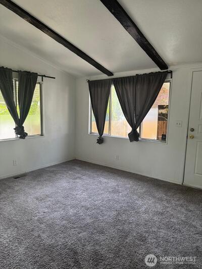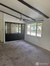 Priced to sell - SOLD AS IS! Welcome to this spacious 3-bedroom, 2-bath manufactured home on its OWN land—no lot rent, and no age restrictions! Nestled in the desirable Kenton Firs community, you'll enjoy low HOA fees ($200/year) while still benefiting from well-maintained parks and a clean, inviting neighborhood. Inside, the primary suite offers a private bath complete with an extra-large soaking tub, separate shower, and walk-in closet. The second bedroom features convenient bath access, and the third bedroom opens directly to the backyard—perfect for guests or a home office. Additional highlights include double-pane storm windows, ceiling fans, a formal dining area, and a spacious kitchen with granite countertops and an eating bar.