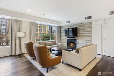 Live the ultimate SLU lifestyle at 2200 Westlake! The sophisticated unit boasts tall ceilings, hardwood floors, central A/C, gas fireplace & gas range. Floor-to-ceiling windows face West over Denny Triangle to take in jaw dropping Seattle Sunsets with meals from your gourmet kitchen w/ SS appliances! 99 Walk Score - Whole Foods is just an elevator ride away, & you're steps from Amazon, Google, cafes, restaurants, & the Trolley. Experience resort-style amenities with a rooftop terrace, pet area, fitness center, spa, theater, game room, & 24/7 concierge & security. Includes secure parking, storage, & EV fast charging. Dues cover most utilities: gas, WSG, & earthquake ins. Strong HOA, no special assessments. Best Value!