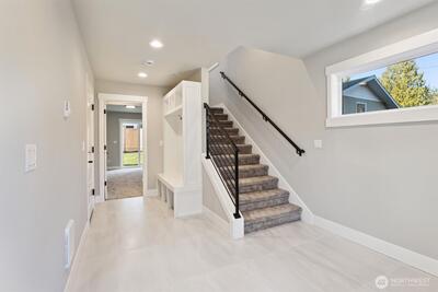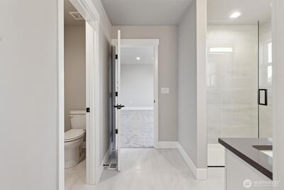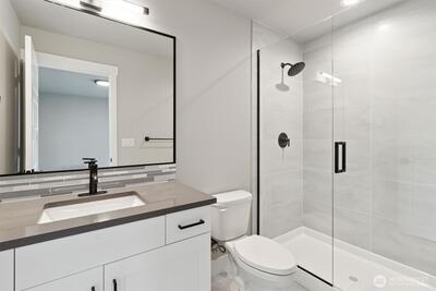 This beautifully appointed 2646 square foot home is only blocks from the light rail, shopping, parks and schools! Entry level offers a bedroom w/ensuite bath & slider to back yard. The Main floor fetures a Chef's kitchen with high quality SS appliances centered between a large dinning room and spacious & bright living area, with high ceilings, and cozy fireplace, along with the covered deck it makes the perfect place to gather! Upstairs, Primary with vaulted ceilings, walk-in closet & ensuite plus three more bedrooms; Gorgeous hardwood floors throughout the main floor and carpet in the bedrooms. Sweeping cedar & fir trees and a fully fenced private backyard creat a tranquil oasis in the rush of life!