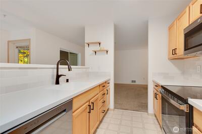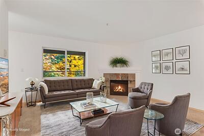 Beautifully updated 2-bed, 2-bath condo, perfectly positioned just outside Seattle in the heart of Renton. Bright open-concept layout, updated kitchen w/solid surface countertops, stainless appliances and a breakfast bar that flows seamlessly into the living area. A spacious primary suite complete with a large walk-in closet and a spa-like en suite bath featuring a sleek walk-in shower. Enjoy morning coffee on your private balcony overlooking tranquil greenbelt. Dedicated covered parking plus abundant guest parking. Cedar River Trail nearby w/scenic walking, biking, and riverfront adventure await. Minutes to I-405, Renton Landing, Boeing, and downtown Seattle. Low HOA dues, secure building, and pet-friendly. Possible Loan Assumption.