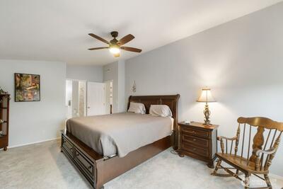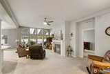 Come join the sought after 55+ community of Harvest Gate. Wonderful 3 bedroom Mt. Vernon floor plan with open living, kitchen & dining areas, lovely gas log fireplace in living room, lots of light pours in, large Primary suite with slider to patio, 5 piece bath & huge walk-in closet. Bright guest bedroom. All appliances stay, laundry room with many cabinets & sink. Big 2 car garage, large covered patio and beautiful landscaping and big yard. Newer furnace and air conditioner, roof only a few years old, mew garage door, new dishwasher, stove and fridge, new carpeting in 2022, new vinyl flooring, new awnings! Clubhouse, RV parking, gated security & more. Assumable lot lease good into 2040! Hurry to this one!