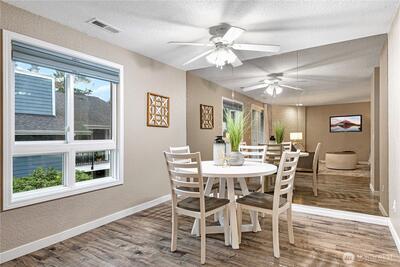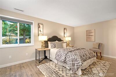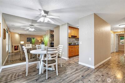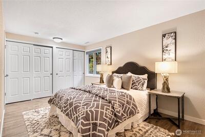 This beautifully maintained top-floor end unit offers 2 bedrooms and 2 baths with partial views of Lake Washington. Enjoy low-maintenance luxury vinyl plank flooring throughout, a private balcony, and a separate storage closet for added convenience.The inviting living room features a striking floor-to-ceiling brick fireplace, while the kitchen is equipped with granite countertops and stainless steel appliances. The primary bedroom includes a private ¾ bath.Additional highlights include an in-unit washer and dryer, ample guest parking, and an unbeatable commuter location—just minutes from the freeway, Factoria, and highly rated Bellevue schools.