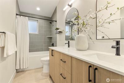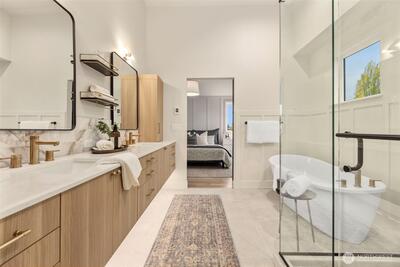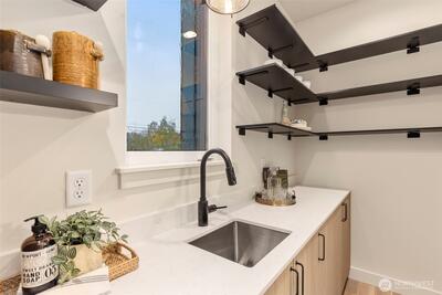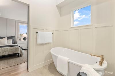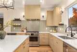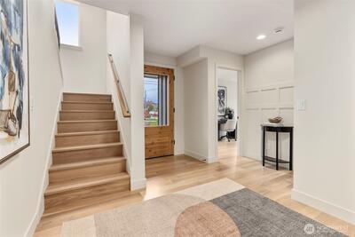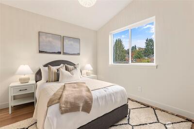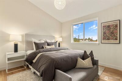 Madrow Homes presents this beautiful new construction home in Seattle's desirable Magnolia neighborhood. Walk into a versatile first floor with two large bedrooms (one w/ en-suite) that can also be utilized as office or living space. Step up to the stunning second floor living space with gorgeous open-concept kitchen, living, dining, covered deck, walk-in pantry, & chic powder room--ideal for entertaining. Top floor holds 3 bedrooms including primary with luxurious spa-like en-suite, as well as laundry room. Designer touches make this a must-see. Wide plank SOLID oak floors! Situated on a corner lot and fully detached with large front yard, this is a rare find for new construction! Attached garage & over-sized driveway = plenty of parking.