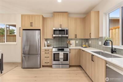 Madrow Homes presents this beautiful new construction DADU home in Seattle's desirable Magnolia neighborhood. Enjoy street-facing DADU living on what feels like its own separate lot. Walk into the main floor that is equal parts stylish and functional featuring beautiful open-concept kitchen, living, dining, & trendy powder room. Second floor holds 2 bedrooms including primary with en-suite, as well as laundry. Engineered hardwoods throughout, designer touches everywhere--this home will be the spot to host your friends! Dedicated parking space & front yard. Builder warranty. Enjoy the convenience of Magnolia living with restaurants & shopping nearby in The Village, plus easy access to SLU, DT, Discovery Park, Ballard, and QA!