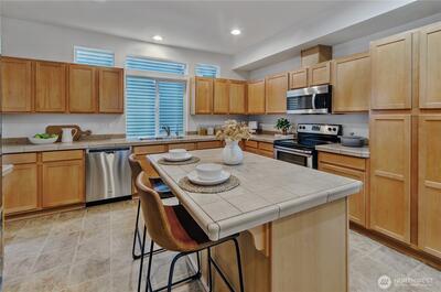 Welcome to Verona — a gated neighborhood within the sought-after Lakeland Hills community. This home welcomes you with an open great-room feel, with it's own gas fireplace that flows into a comfortable eating space. Enjoy entertaining in the spacious kitchen, which steps down to a private outdoor patio. A convenient powder room completes the main level. Upstairs offers a primary suite, and two sizeable bedrooms, as well as an additional full bathroom. Nearby walking trails, parks, schools, and a grocery store add to the appeal, with quick access to Hwy 167 and the Sound Transit Station for easy commuting. Come see all that Lakeland Hills living has to offer!