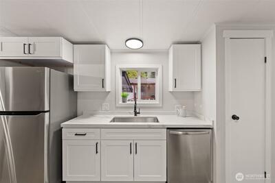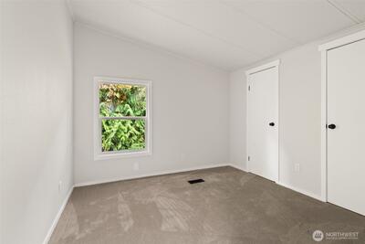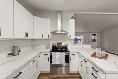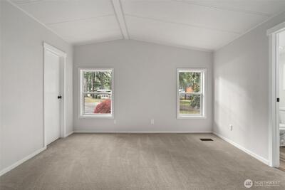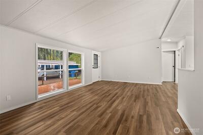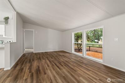 Don't miss your chance to live in Whisperings Woods, one of the areas most sought after manufactured home parks. Bring your belongings- this home is ready for move-in! The chef of the house will love the brand new kitchen, including all new shaker cabinets, quartz countertops, sink, fixtures & stainless steel appliances. New waterproof luxury vinyl plank flooring in all the high traffic areas & upgraded carpet in the bedrooms. New windows, bath fixtures & fresh paint on the inside & out. New baseboards, trim & led lighting throughout. The heat pump will keep you warm in the winter months & cool (AC) in the summertime. Grab that favorite beverage & head out onto your new deck & enjoy the serenity of Whisperings Woods. Only mins from I-5.