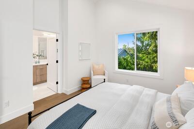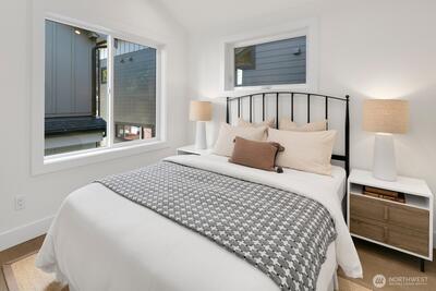 2.99% INTEREST RATE OFFER! This modern new construction 2 BD Detached Home + Carriage House in Wedgwood has it all. The home features an open-concept living and dining area with an island kitchen showcasing a high-end Bertazzoni appliance package. A sliding glass wall opens to a private, fully fenced patio and yard. Upstairs, you’ll find a bedroom, full bath, and your primary suite. Adding versatility, the detached garage offers additional space above with its own full bath and kitchenette—perfect for guests, work, or creative pursuits.