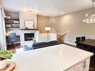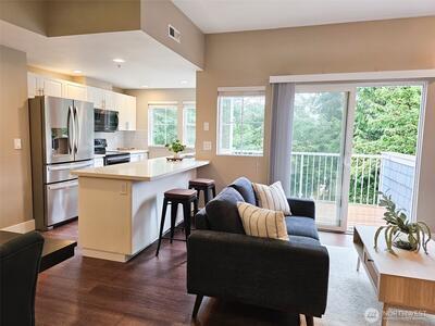 Rare opportunity in Sammamish Pointe community. This conveniently located condo boasts privacy, modern updates and abundance of natural light. No neighbors above and below, open-concept living area with high ceiling and gas fireplace, and large private balcony. Updated kitchen w/quartz countertops and a generous island - ideal for casual meals & entertaining. Large corner bedroom with thoughtfully updated walk-in closet. New engineered hardwood flooring thorough the unit. Top floor unit with a private single car garage below allows for additional storage space, plus guest parking nearby. Well-maintained HOA, covers water and sewer. Short distance to shopping, restaurants, hiking, and easy I-90 access. Pet-friendly community w/no rental cap.