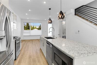 Come see this beautiful modern South Seattle townhome in the heart of Beacon Hill! This 3-bedroom, 2.5-bath home features an open floor plan, chef’s kitchen with quartz countertops, stainless steel appliances, and a spacious island. The primary suite includes an ensuite bath and walk-in closet. Enjoy hardwood floors, designer lighting, and oversized windows for natural light. Relax on the private patio and upper deck. Oversized detached garage with custom storage. Conveniently located minutes from the Beacon Hill Light Rail, I-5, I-90, parks, restaurants, and Downtown Seattle.