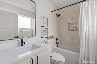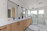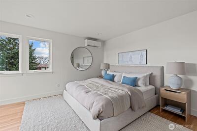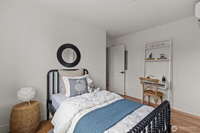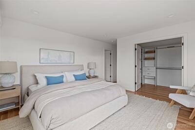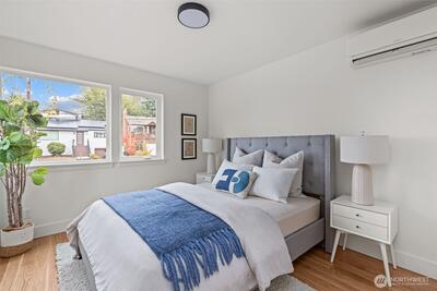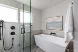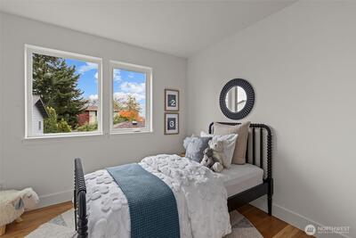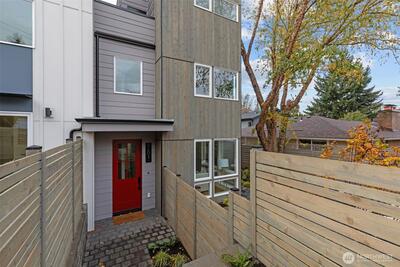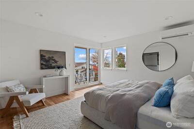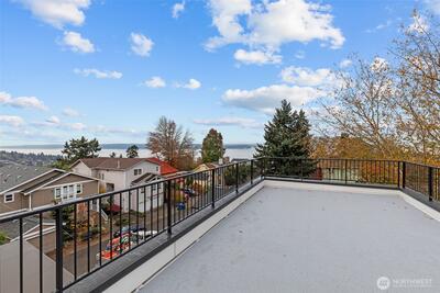 Modern coastal architecture meets refined craftsmanship in this brand-new 4-bed, 2.5-bath home offering sweeping water views and elevated comfort at every turn. Sun-filled interiors showcase real white-oak hardwood floors, locally made Belmont cabinetry, quartz counters, induction range, and designer lighting. The spa-inspired primary suite features heated tile floors, soaking tub, dual vanity, and private deck overlooking Puget Sound. No-carpet living, high-efficiency HVAC and hot-water systems engineered for Northwest winters, a fully fenced private yard, rooftop deck, and off-street parking combine luxury with sustainability. A rare blend of performance, design, and lifestyle just minutes from Lincoln Park, cafés, and waterfront trails.