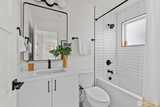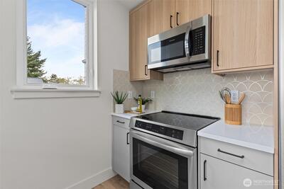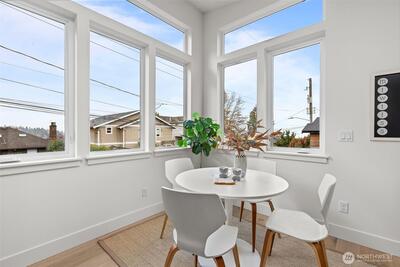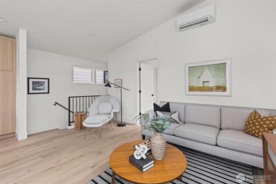 Contemporary design and quality craftsmanship define this stand-alone 3-bedroom DADU delivering light, volume, and privacy. Vaulted ceilings and real hardwoods set a warm tone for the open living and designer kitchen featuring Belmont cabinetry, quartz surfaces, induction range, and elegant fixtures. The primary suite boasts a walk-in closet and custom-tiled bath, complemented by two additional bedrooms and full guest bath below. High-efficiency HVAC and water systems ensure year-round comfort, with no-carpet interiors, a fully fenced private yard, and dedicated off-street parking. A rare fusion of independence, sustainability, and West Seattle charm just minutes from Lincoln Park, shops, and waterfront trails.