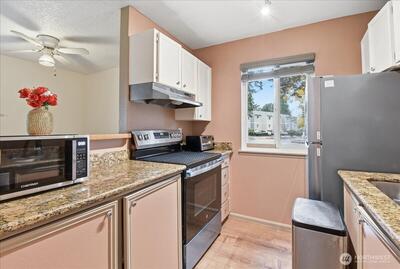 Beautifully updated ground-floor condo in a highly sought-after community! This unit features stunning granite countertops, fresh interior paint, and a fully remodeled bathroom. The primary bedroom includes a large walk-in closet for extra storage and comfort. Enjoy resort-style amenities such as a clubhouse, pool, and sauna, along with a covered parking space and community EV charging station. With no rental cap, it’s an excellent choice for both homeowners and investors. Perfectly situated in one of the most ideal locations near Evergreen Hospital, Totem Lake Village, shopping, dining, scenic trails, and easy I-405 access—offering the best in convenience and lifestyle!