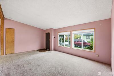 Large corner lot and fantastic layout in a 55+ park. This home lives large with its 1724 sq ft layout there's tons of space. The primary bedroom is on one end of the home and it includes a large closet and private bathroom with a newer walk in shower. On the other end you'll find 2 additional bedrooms with a bathroom and the large family room with a slider to the outside. In the middle is a living room, kitchen, dining room and utility room. Tall ceilings make the home feel even larger. The carport parking fits 2 cars and more can park uncovered. There is AC for the warmer months and a newer furnace for the chilly times. Lot rent is low at $713.00 a month.