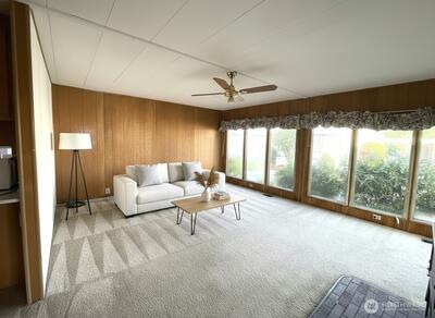 Welcome home! This comfortable, 2-bedroom, 1.75-bath mobile home has spacious living areas, pellet stove, carport and private storage located in peaceful Harborland Mobile Home Park in Gig Harbor. This property is perfect for anyone 55+ years of age looking for low-maintenance living with great amenities including spacious open-concept living area with natural light. Private carport includes private storage too. Community Amenities include recently remodeled clubhouse, picnic areas, pet-friendly community (small pet), on-site management. Close to everything including grocery, restaurants, etc.