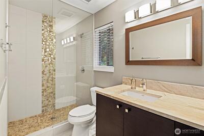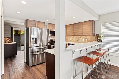 Perched above Downtown Redmond and the Sammamish River Trail, this Handsome Home is Surrounded by Parks, Trails, Dining, Shopping, & Adventures! Step into Contemporary NW Living w/Soaring Ceilings, Gleaming Floors, and Clerestory Windows. Perfectly Updated, this Bright Floorplan is Graced with an Eat-In Kitchen that Flows into the Living/Family/Dining Spaces, & an Office/Den w/a Private Deck. Upstairs, the Primary Suite w/Loft & 5-Piece Bath is the perfect Retreat! The 2nd Bedroom & ¾ Hall Bath Complete the Upstairs. An Oversized Garage and Additional Storage Lends itself to any Creative Venture! Adorned with Mature Landscape, this Private Redmond Community Offers the Complete NW Lifestyle. Close to Microsoft, Google & META! Welcome Home!