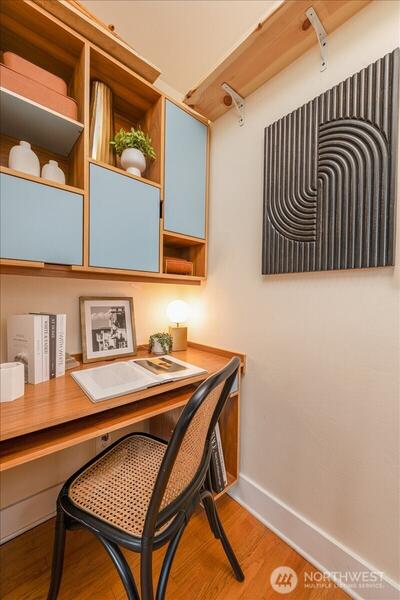 Top-floor corner condo at The Rowan in Capitol Hill! This bright, open unit features warm hardwood flooring and expansive windows that fill the space with natural light. Enjoy a thoughtfully designed layout with abundant built-ins and generous storage throughout. Expansive living room room flows seamlessly to the kitchen with more practical storage. In-unit laundry adds everyday convenience. Practical and efficient office nook. Secure, covered parking and additional on-site storage complete this rare find in one of Seattleās most vibrant neighborhoods. Old world charm meets modern convenience here at the Rowan.
