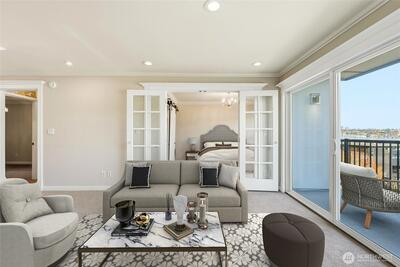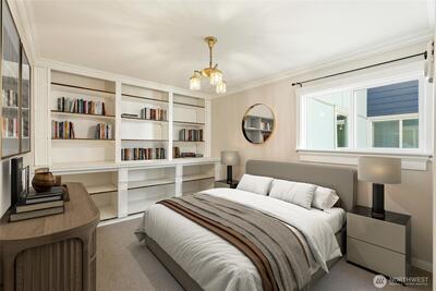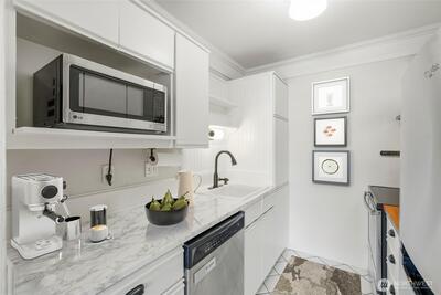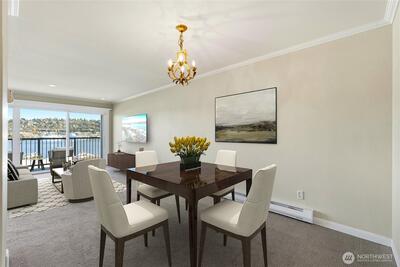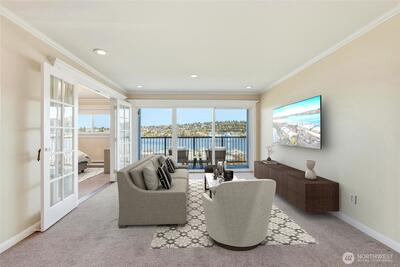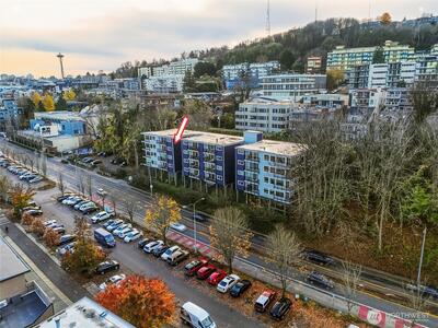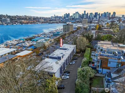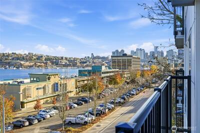 Front-row Lake Union and Gas Works Park views set the stage for everyday living and the best seat in the city for 4th of July fireworks! This 2-bedroom, 1-bath condo blends timeless vintage charm with modern convenience, featuring crown molding, French doors, custom built-ins, a clawfoot tub, and your own washer & dryer. Sunlight pours through a wall of windows onto a private balcony perfect for coffee, cocktails, or sunset views. Walk to Queen Anne, Fremont, Downtown, dining, shopping, and waterfront paths. Thoughtful touches like a walk-in closet w/vintage detailing, hallway built-ins, and charming fixtures add personality at every turn. Reserved parking, storage (#32), pet-friendly, no rental cap—this is city-lake living at its finest!