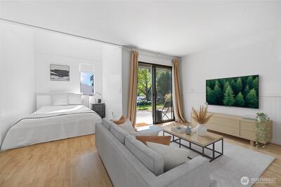 Discover easy living and or excellent investment potential in this well-maintained, ground level, studio condo. Fresh interior paint creates a bright & welcoming space ready for your personal touch. The efficient layout opens to a generous covered patio, perfect for morning coffee or evening relaxation. Step outside & simply cross the street to enjoy the private lake! No rental cap, no special assessments and 1 year home warranty included. Residents enjoy access to unmatched community amenities including a private lake, scenic trails, four pools, gym, sauna, clubhouse, cocktail lounge, game room, athletic courts & pea patches. Complete with a reserved carport & storage, all just minutes from Redmond, Kirkland & Bellevue.
