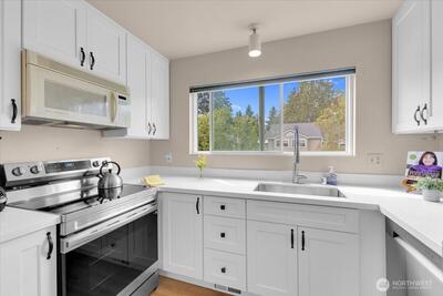 Move-in ready two-level condo in the sought-after Juanita Crest community. This updated 2 bed, 1.5 bath home features new paint, modern flooring, refreshed kitchen finishes, insulated bath venting, new detectors, and completed pre-inspection repairs for added peace of mind. Enjoy a private patio with storage, efficient heating, and a well-managed HOA that includes water, sewer, garbage, and earthquake insurance. With no rental cap and 30-day minimum leasing, this home offers strong investment flexibility. Minutes to Juanita Beach Park, Totem Lake Village, shopping, transit, and major employment centers. A turnkey opportunity in a prime Kirkland location.