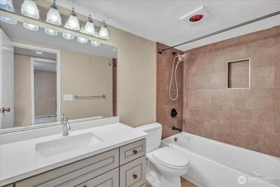 Check us out! Remodeled, with Maple cabinets, Granite countertops, Stainless appliances, Beautiful tiled backsplash, Trek lighting and more in the kitchen. Living rm with Gas fireplace insert, to lower your Utility Bills! Full bath with J&K Cabinets and Granite counters, also showing off our beautiful tiled, wall surround. Utility Rm, has a newer stackable W/D, and plenty of storage area. Primary, with walk in closet. Newer, window package, floor moldings, light fixtures, faucets etc., throughout. Flooring is Berber carpets and laminate. Two sliding doors to private patio out back. Pet friendly complex and located to state parks, I-90, Costco, and close by Issaquah schools and shopping!