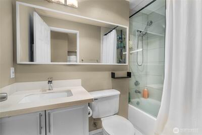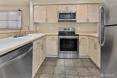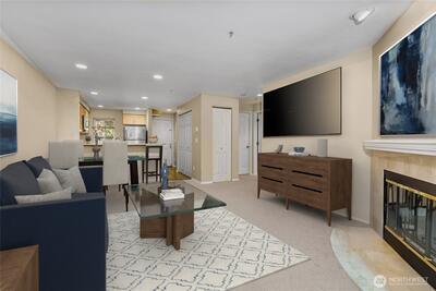 Enjoy a fabulous Regentwood, top-floor unit on a quiet hillside location overlooking the greenbelt. This light-filled home features an open floor plan, 2 bedrooms, 1.75 baths, a cozy wood-burning fireplace and unbeatable convenience—just minutes to downtown Kirkland and Bothell’s restaurants, shops, and activities. Residents benefit from an HOA that covers water, sewer, garbage, and snow removal. Plus, with a 1-car garage, an additional assigned parking space, and no rental cap, this property offers both comfort and excellent flexibility. Perfect for homeowners or investors alike! Pets Ok. Remainder of the special assessment to be paid by seller at closing.Exterior improvements included new siding, paint, railings, garage doors.