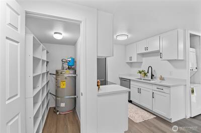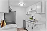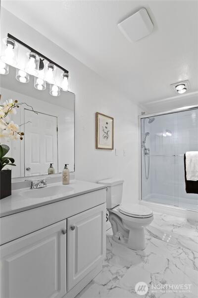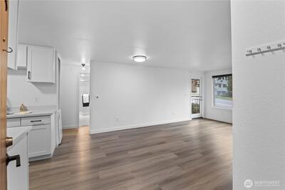 Bursting with natural sunlight this one level condo overlooks the park with a private balcony. Remodeled kitchen in 2024 features quartz countertops, stainless appliances and soft close white shaker cabinets along with new luxury plank flooring bringing the modern touch to this home. 2nd floor unit with no other units under this unit. Plenty of storage, both in the unit and with an extra storage cage. Secure access building with an elevator and secure garage parking. Your plants will thrive here. Easy commuter options along the bus line and quick access to I-5 and Aurora for getting downtown.