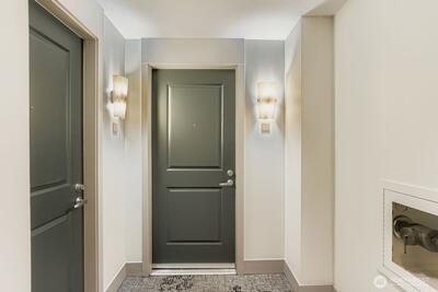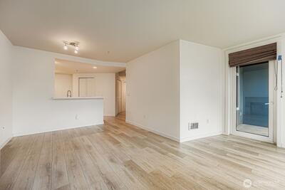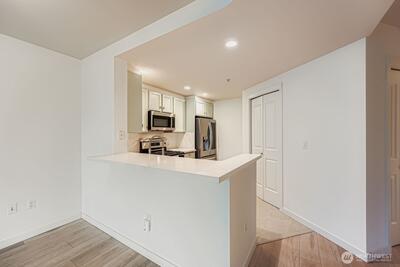 Chic 1 Bedroom updated & ready to move in with new LVP and paint. Kitchen has new granite countertops & the stainless steel appliances include gas range. Living area W/ Space Needle view has cozy gas Fireplace & opens to privatet balcony. Dining nook & seperate laundry/storage room make this condo very livable. Hotel style amenities incl 24 hr concierge, grand party room, amazing terrace with Sound, Mountain & city views. Steps to parks, Seattle Center, restaurants & all that urban lifestyle offers.