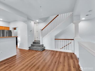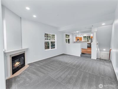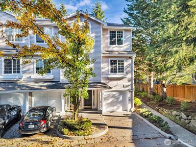 This end unit townhome just north of Factoria has had a refresh! With no attached unit on the right side, this unit feels airy & bright. main level entry & extra deep 1 car garage access. 2nd story opens to a vaulted ceiling living room w/ fireplace & access to the deck. A large dining room means you can host which opens to the kitchen offering new SS appliances. The entire unit has NEW interior paint, toilets, carpet & LVP flooring. Don't miss the laundry room & powder bath. All appliances stay -W&D also brand new. Top floor vaulted ceiling bedroom suites both feature full baths. Front bedroom has a walk-in closet while the back bedroom has a continental style 5pc bath & double closets. Location can't be beat. Low maintenance living that feels like a home within minutes to I-90 & I-405.