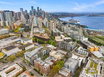 Enjoy a treetop perspective from this top-floor corner unit, elevated above a quiet, tree-lined street and bathed in natural light from abundant windows – 9 to be exact! Historic period details with original oak hardwoods, rich millwork, & coved ceilings. Yet, this home is beautifully updated where it counts with a clean, modern kitchen and stylish bath. SECURE GARAGE PARKING – a rare and valuable find in the neighborhood – completes the package. Queen’s Court is a well-maintained building positioned in the heart of Lower Queen Anne. With a 97 Walk Score, it’s just one block to Climate Pledge Arena and Seattle Center, not to mention countless amenities. Pet-friendly HOA with community garden, library, laundry room, & assigned storage space.