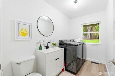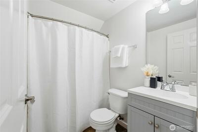 Situated in a quiet cul-de-sac and backed by evergreens, this spacious Lake Tapps home offers comfort, privacy and over 2,000 square feet that lives like a single family home. The main level feels bright and welcoming with fresh paint, modern lighting, and new kitchen appliances. The primary bedroom is conveniently located on the main floor with a double vanity. Upstairs, two bedrooms provide flexible space for guests, work, or play. The finished lower level adds a generous bonus room, new flooring, and a large flex area. Enjoy a fully fenced yard, a new furnace, a newer heat pump, a newer water heater, and the HOA that covers water, septic, front yard care, and private lake access at nearby Jenks Park. Imagine the life you’ll create here!
