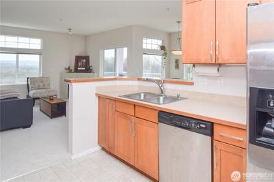 Amazing entry-level no-step unit with a view of MT. Rainier, the valley & wet wetlands. Light & bright two-bedroom, two baths condo with a spacious master bedroom suite with walk-in closet and a soaking tub. Relax in this cozy living room with a corner fireplace, Enjoy unobstructed views from the large balcony. Great location with easy access to I-5 and 167.