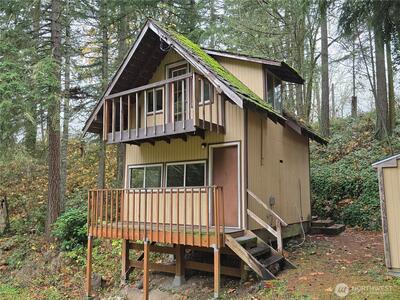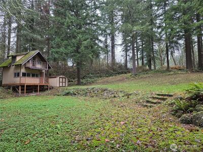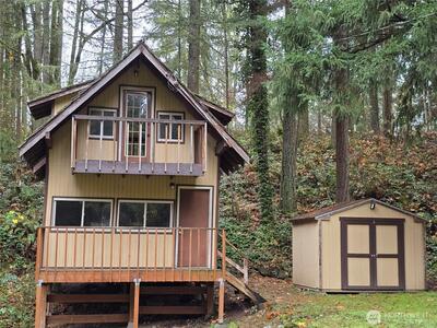 Private woodsy retreat! Just shy of 3 acres, this nicely treed parcel has a year round pond, wildlife & a cozy little primitive cabin. Bring your ideas to move foreword, there is NO well or septic currently. Power is in and has been off. Cabin is wired for 220. The cabin and garage are in need of a new roof. Expired wetland buffer, site plan, septic and well design are available to see. This little place will shine with some sweat equity come see what the possibilities are. Just a short drive to shopping, Mt. Rainier, hiking, fishing and more.