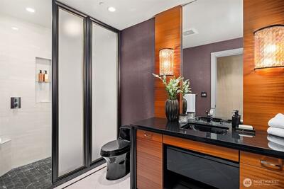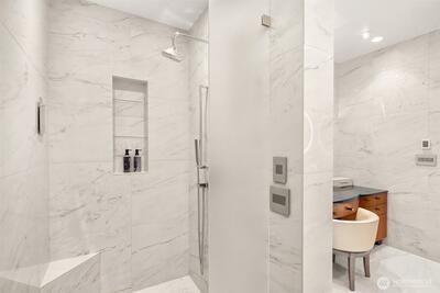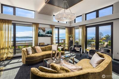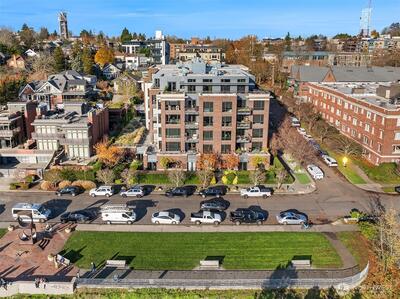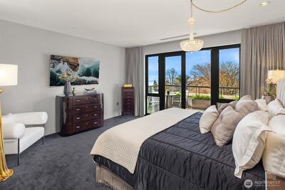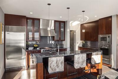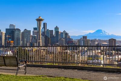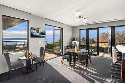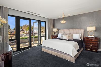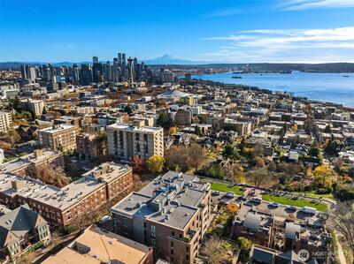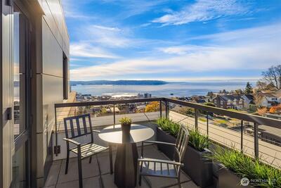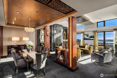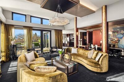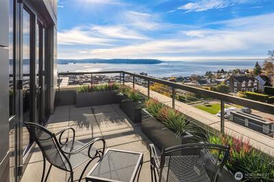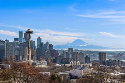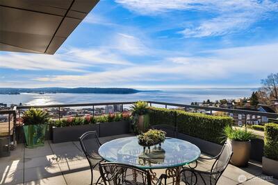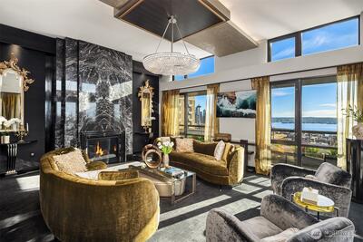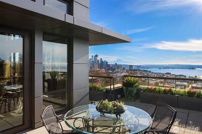 A Christmas gift to yourself, one you'll never want to return! This top-floor penthouse crowns one of Seattle’s most distinguished boutique buildings, blending sweeping views of Puget Sound, Mt. Rainier, and the Olympics with the polished glamour of Hollywood Regency design. Think mirrored surfaces, refined detailing, and a touch of cinematic drama throughout. Three private terraces extend the living space outdoors, ideal for cocktail hours, sunset views, or quiet evenings above the city. Pet-friendly, concierge-served, and highly walkable to everything Queen Anne has to offer. Luxury living with timeless star quality.