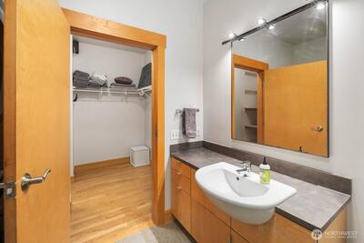 The 81 Vine building was originally a printing factory, renovated in 1999 by award-winning Geise architects into mixed-use residential units & lofts. Located just blocks from Pike Place, the revitalized Seattle waterfront, Olympic Sculpture Park, Seattle Center, & countless shops and restaurants. Walkscore of 98! Part of "Growing Vine Street" which converted an 8-block section of Vine Street into an urban watershed & street park. This light flooded 4th flr Unit features high ceilings, open one bedroom design w/ balcony off the living room through large french doors, a sleek modern kitchen with breakfast bar, walk-in closet, 2 in-wall A/C units, Full sized stack W/D, ample in unit storage plus additional storage unit. A must see!