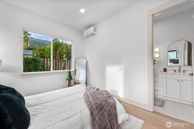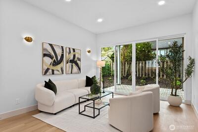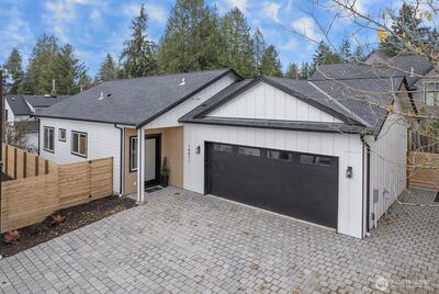 The elusive, single level, new construction home you've been waiting for is now available! Imagine pulling into your 2 car garage, tucked down a private drive, kicking off your shoes and heading into your expansive great room with soaring ceilings, oversized doors and kitchen island. The day is yours to relax or entertain from the private, covered patio off the sliders, to the BIG BONUS ROOM or perhaps in the rejuvenating primary bathroom. Energy efficiency, healthier & more comfortable living are virtually guaranteed with the BuiltGreen 4 Star status, while equipped with AeroBarrier tech, EV charger, heat pump for A/C & more. Your must-have guest powder room, dedicated laundry & storage galore complete this well-designed new dwelling.