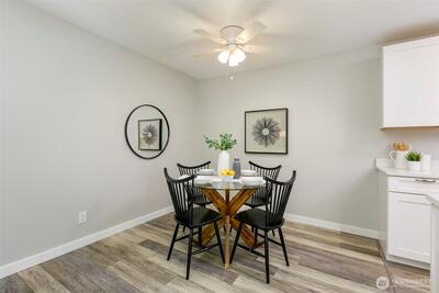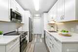 Welcome to Waterfront living! Imagine tranquil, retreat style living yet within minutes to all Seattle has to offer. Beautifully appointed & bright 2br/1.75ba condo. Newly updated kitchen w/ quartz counter tops & top of the line stainless steel appliances & fixtures. Generous owner's suite w/ walk-in closet operated by stylish barn doors & .75 bath. New double pane windows. In the summer bring water toys to the private beach or pool, play pickleball, enjoy the lovely grounds. Walking distance to grocery stores, restaurants, cafes, the library. Low HOA fees due to active community-run HOA. Off-street parking. Secure, gated entrance. Rental cap not met and could be a great investment as well. Bus stop & Interurban trail in front of complex.