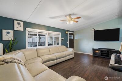 A beautifully updated 1,232 sq ft home in the desirable all-ages Melody Pines Estates community. This move-in-ready property offering modern comfort, style in an excellent Olympia location. An open layout featuring a vaulted ceiling that spans the kitchen, dining, & living room, creating a bright & spacious atmosphere. Nearly every surface has been improved, including new waterproof vinyl plank flooring, fresh interior paint, & new double-pane vinyl windows throughout. The kitchen boasts brand-new cabinets, countertops perfect for meal prep and entertaining. Both bathrooms have been beautifully remodeled with new tile, updated flooring, and stylish vanities. Generously sized bedrooms with large closet