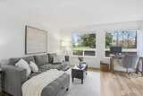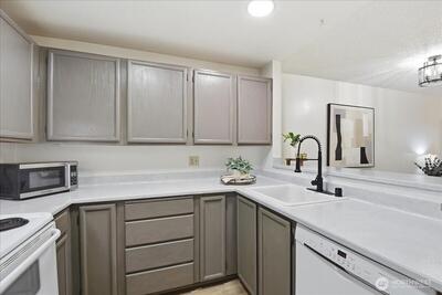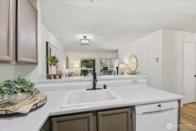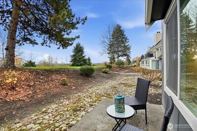 Enjoy peaceful, private living in this ground-floor end unit tucked against a serene natural backdrop.Open-concept living & dining area features a breakfast bar, pantry, and a cozy wood-burning fireplace. Single-car garage PLUS assigned uncovered spot, and in-unit laundry adds everyday convenience. Large windows fill the space with light, and a sliding door leads to a patio overlooking a lush lawn and stone-covered landscaping. Luxury vinyl plank floors. The community received major upgrades in 2020, including NEW roofs, gutters, windows, siding, patios, porches, garage doors, railings, exterior paint, & lighting. Low HOA dues. Pet-friendly. Close to shopping, parks, golf, & trails with easy access to I-5 &167. Great alternative to renting.