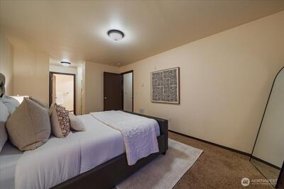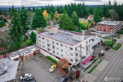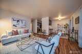 Stunning top-floor corner condo in sought-after Pinehurst! This bright 2 bed, 1.75 bath home features a west-facing deck for sunset views, spacious living room with gas fireplace, and open floorplan with dining area and eating bar. Updated with new LVP flooring, neutral colors, and refreshed bathrooms. Kitchen offers solid stone counters and stainless appliances. Primary suite includes walk-in closet and ¾ bath. Rare in-unit laundry room with full-size W/D. Secure garage parking + storage. Great location near Northgate Light Rail, UW, shops, and dining. No rental cap—ideal for investors or first-time buyers!