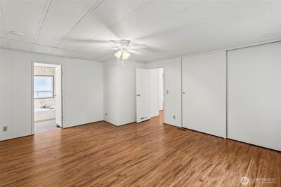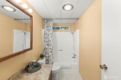 Nestled in well maintained 55+ community of Hillcrest Park & just minutes from downtown Gig Harbor, Costco, YMCA & the City Park. Bright & open 1,795 sf 3 bedroom, 2 full bath manufactured home with vaulted ceilings, 5 piece on-suite primary bathroom & a bonus 12' x 12' workshop area. The well equipped kitchen features double ovens & ample storage space, open to the main living area. Cozy up next to the toasty fire & feel next to nature, as the wall of windows lets the outside in. Energy upgrades include double pane windows & a mini-split heating system. Foundation has earthquake resistant bracing system. Park pre-approval required. Monthly space rent of $1,008 includes water, septic & garbage. Needs a little TLC . Home Warranty Included!