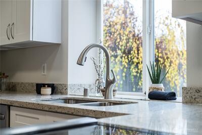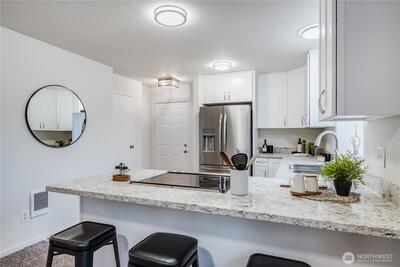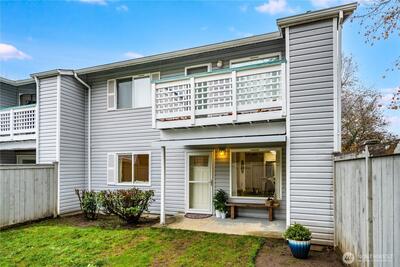 A rare find! Welcome home to this 2 bed, 2 bath ground floor condo with a fenced backyard. Beautifully updated with modern finishes, it's clean and move-in ready. Fall in love with the updated kitchen, with new white soft-close cupboards, stainless appliances, and quartz countertops. This end unit benefits from ample natural light through large, double pane windows. The primary suite has its own private bath, and both baths are updated with new vanities, flooring, and fixtures. Step out the back door to a covered patio, storage closet, and a level, fenced backyard. Plant an herb garden, play, relax, or enjoy a 4-legged furry friend in the backyard. Auburn Place is a well managed complex offering affordable homeownership. Come make it yours!