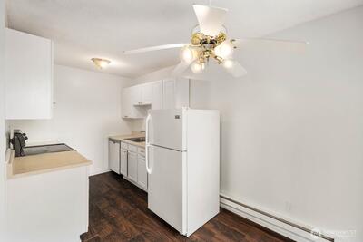 Sunny upper-level 2-bedroom condo in a prime Kent location! Enjoy an open layout, private deck, and no one above you. HOA dues cover common area maintenance, water, sewer, garbage, snow removal and access to the clubhouse with game room, pool and community laundry. Tucked inside the community yet moments from shopping, restaurants, Kent Station and Hwy 167 for an easy commute north or south. A low-maintenance home base close to everything Kent has to offer. No rental cap!