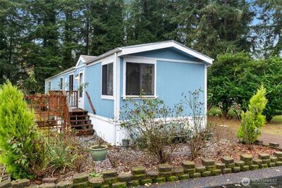 Welcome to this well-maintained 1989 single-wide manufactured home located in a highly desirable 55+ community. Offering 924 sq ft of comfortable living space, this 2-bed, 2-bath home features a desirable split floor plan with bedrooms on each end of the home. Open concept living and Kitchen areas. Spacious utility room off kitchen for laundry space and pantry storage. Situated on a corner lot at the entrance of the community, this home enjoys a larger yard area and enhanced privacy. The location is hard to beat—just minutes from I-5 for an easy commute, plus an abundance of nearby shopping, dining, and everyday convenience. A wonderful opportunity to enjoy comfortable, low maintenance living in this great home.