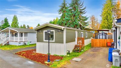 Prepare to be wowed by this fully remodeled 2 bed, 1.75 bath manufactured home in the heart of Black Diamond. Every inch feels brand new, from the custom kitchen with quartz counters, gold-tone fixtures, and stainless steel appliances, to the spa-inspired primary bath featuring a soaking tub, double vanity, and walk-in shower. Light-filled rooms, modern flooring, and frosted glass closets add a luxury touch throughout. Tucked into a peaceful community near Ten Trails & historic downtown. This is not your average manufactured home.... it's a showstopper.
