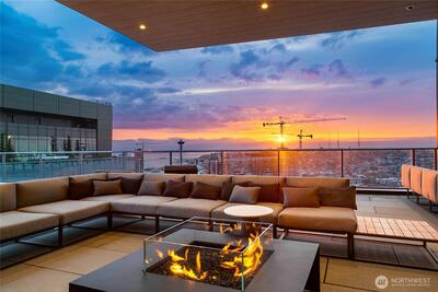 PH203 at The Nexus is a rare 3,000-sq-ft penthouse that captures sweeping panoramic views. Completed in 2020, this 3-bed, 3-bath residence blends modern luxury with floor-to-ceiling windows, refined finishes, and expansive open living spaces. Primary suite with walk-in closet, and full guest suite. The Nexus enhances everyday living with concierge service, a fitness center, dog lounge, media lounge, and the impressive 41st-floor Sky Club featuring an exhibition kitchen, private dining, lounge, and terrace. Includes 6 parking spaces and 2 storage units. Ideally located in downtown Seattle, PH203 is perfectly suited for those seeking sophistication, convenience, and elevated urban living.