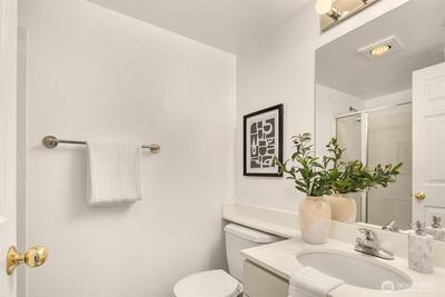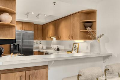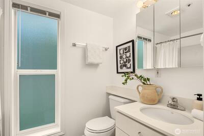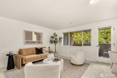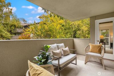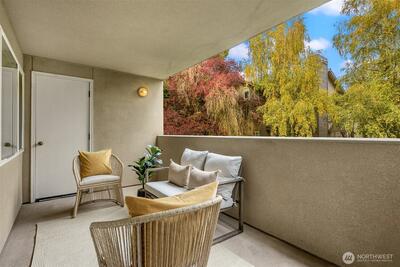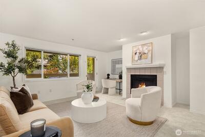 Lakeside living opposite Juanita Beach Park on Lake Washington’s shores! Bright 2 bed, 1.75 bath corner unit features a spacious great room design with cozy wood-burning fireplace flowing to a large covered balcony. Modern kitchen with new stainless steel appliances, ample storage, and breakfast bar. Primary suite with en-suite bath, generous closets, and private balcony access. In-unit laundry and storage. Fresh carpet and paint. Savor serene tree and creek views from your tranquil balcony. Stroll to swimming, fishing, tennis, or Friday Market’s fresh produce and unique crafts. Vibrant Juanita Village offers craft coffee, dining, shops and conveniences. Minutes to tech hubs and I-405. No rental cap. Move-in ready, welcome home!