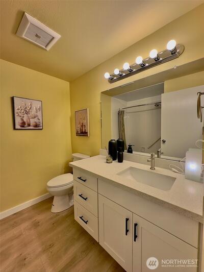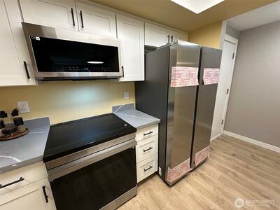 Great investment opportunity across from Microsoft campus. Just 0.7 miles to Overlake Center and the upcoming Overlake Light Rail Station to downtown Seattle, scheduled for 2030. Located in the top-rated Bellevue School District. Ground-floor end unit with patio and southern exposure. 2 bedrooms with walk-in closets and 1 bathroom. BRAND NEW remodeled kitchen with walk-in pantry. Recent upgrades: paint, laminate flooring, baseboards, cabinets, sinks, faucets, toilet, heaters, switches, outlets, and light fixtures. Coin-operated laundry on same floor. Community amenities: pool, tennis court, gated mailroom, and ample visitor parking. Strong rental demand and future appreciation potential.