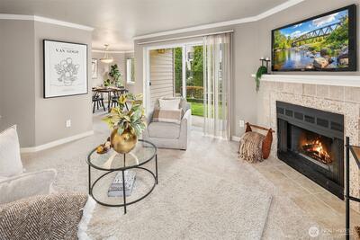 Investor Alert! Well-maintained one-level condo has new carpet & excellent value in a prime Juanita location. Great opportunity to add your personal touches & unlock this property's full potential. Kitchen has abundant cabinetry, granite counters & breakfast bar. Dining rm overlooks the lawn. Living rm has cozy frpl & slider to covered patio w/storage. Primary bdrm opens to full bath. Second bdrm is an ideal home office. Community amenities incl. clubhouse w/seasonal outdoor pool. Easy location-blocks to dining, shopping, Lake Washington beaches, walking trails, Totem Lake Village & minutes to vibrant DT Kirkland. Convenient lifestyle & investment opportunity in one of Eastside's most convenient neighborhood! No rental cap & pets allowed.